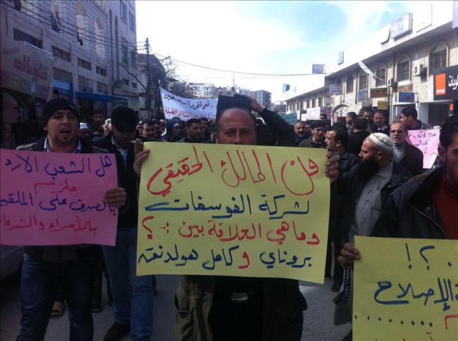وحذر المشاركون في المسيرة من التلاعب بمقدرات الدولة مطالبين باستعادتها فهي ملك الشعب - على حد وصفهم - وركزت اليافطات على شركة الفوسفات التي تقع ضمن حدود محافظة الطفيلة.