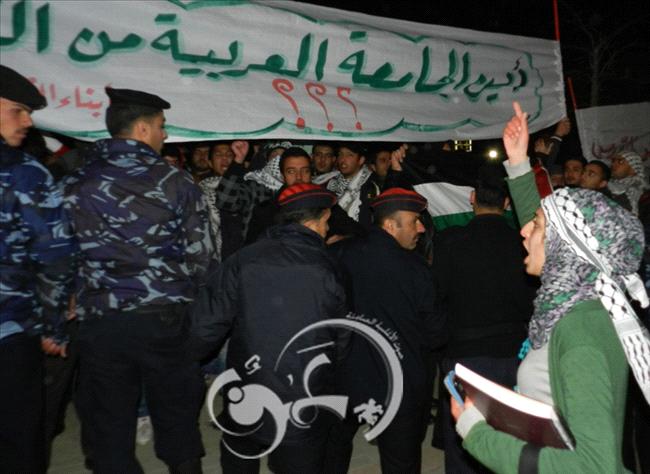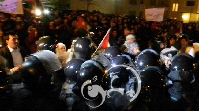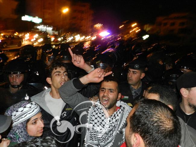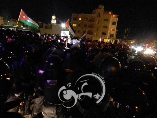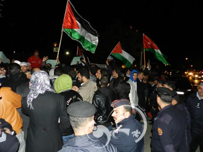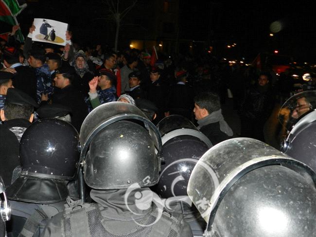 عمون -أنس ضمرة و الاء عليان - فرقت قوات الدرك معتصمين أمام المسجد الكالوتي بالقوة مساء الأحد بعد أن حاولوا الوصول الى مقر السفارة الاسرائيلية في ضاحية الرابية.