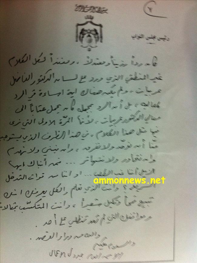 معالي ابوفيصل رجل محترم واردني اصيل وبصراحة بيسام حدادين مو عاجبه حدا ولا يجوز ان يسيء لرئيس المجلس