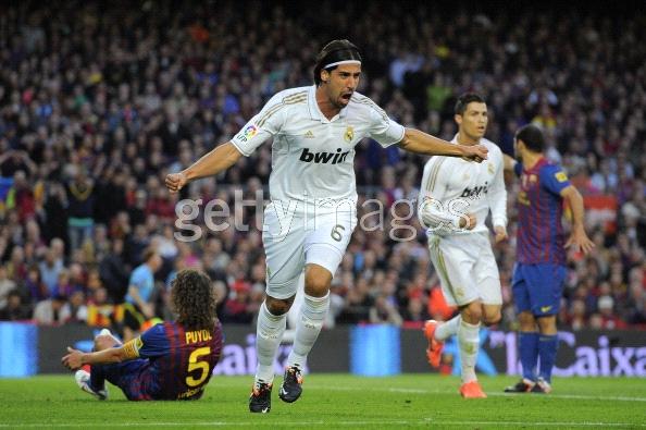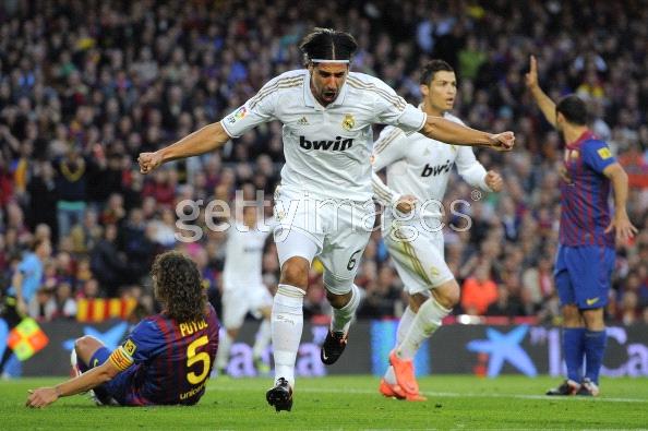 وأنهى الريال الشوط الأول لصالحه بهدف نظيف سجله الألماني سامي خضيرة في الدقيقة 17 اثر ضربة ركنية لعبها الأرجنتيني آنخل دي ماريا وهيأها زميله البرتغالي بيبي برأسه وفشل حارس المرمى فيكتور فالديز في الإمساك بها ليخطفها خضيرة من أمام كارلس بويول إلى داخل الشباك.