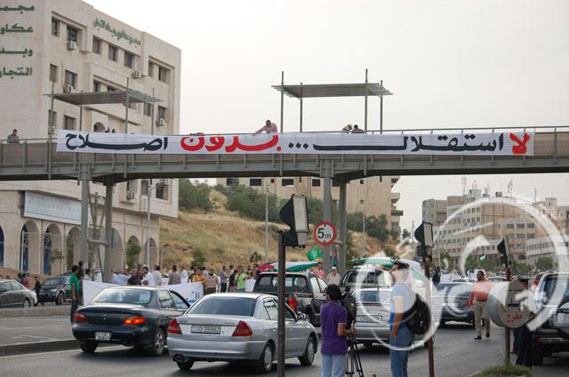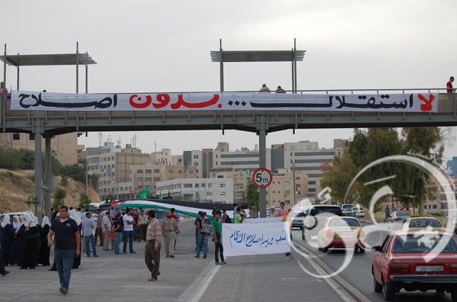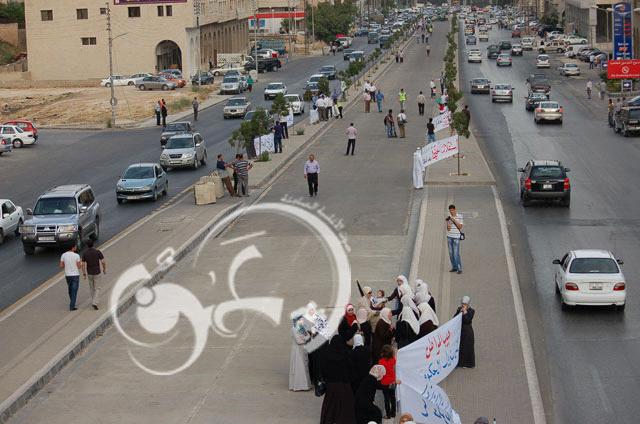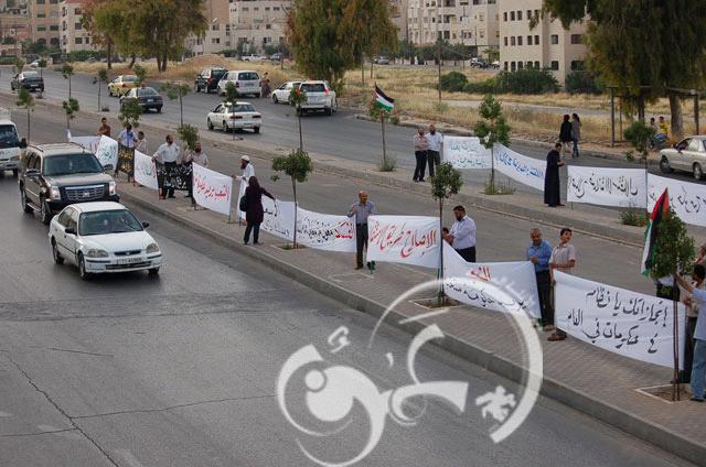 عمون - محمد ابو حميد - اقامت مجموعة من الناشطين وأعضاءا من حزب جبهة العمل الاسلامي مساء الثلاثاء سلسلة بشرية رافعين لافتات تحتج على سياسة رفع الأسعار وتطالب الحكومة بعدم مساس جيب المواطنين من خلال الاصلاحات المفترضة .