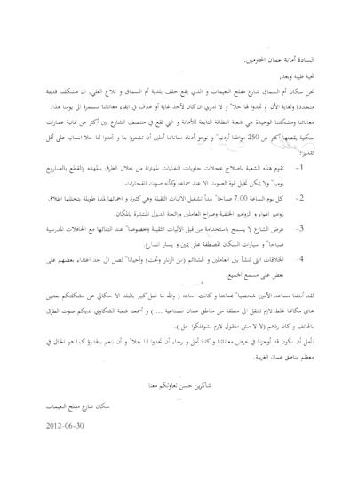 السادة أمانة عمان المحترمين.