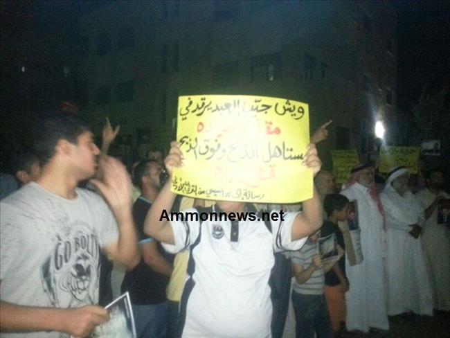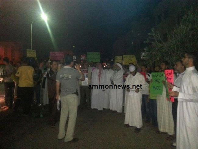 عمون - اقامت الحركة الشعبية في مدينة العقبة المحسوبة على الحركة الاسلامية اعتصاماً أمام القنصلية المصرية في المدينة.