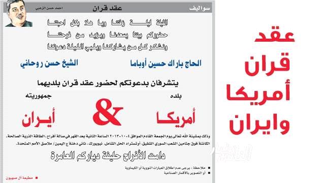 هذا عقد قران ثاني بين الغرب وايران اما الاول فتم بين الغرب والخميني عام 1979,.......