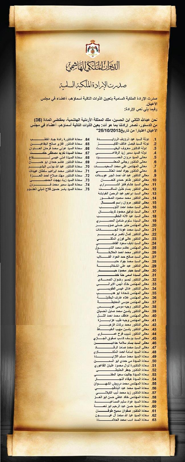 عمون - وائل الجرايشة - صدرت الارادة الملكية السامية باعادة تشكيل مجلس الاعيان برئاسة رئيس الوزراء الاسبق عبد الرؤوف الروابدة.