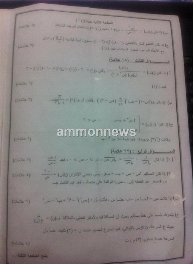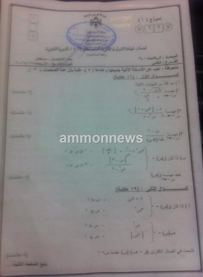 عمون - محمد ابو حميد - بعد استياء طلبة مرحلة الثانوية العامة فرع العلمي من اسئلة امتحان الرياضيات وتوجيه التهم للوزارة بان الأسئلة من خارج المنهاج المقرر.