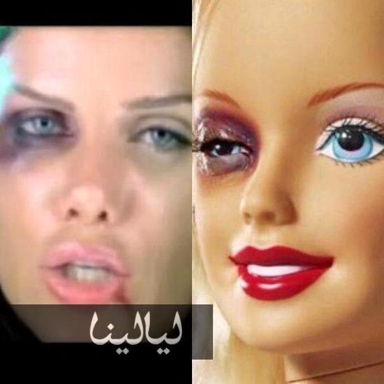 عمون - شاركت الفنانة اللبنانية نيكول سابا جمهورها عبر موقع التواصل الإجتماعي تويتر صورة لها وعينها مصابة لكن بجانبها دمية باري أيضاً مصابة.