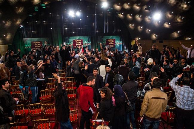 في تلك الأثناء، ردد بعض الحضور شعار "يسقط يسقط حكم العسكر (في مصر) مقابل تعالي أصوات في الاتجاه المعاكس: "سيسي، سيسي، سيسي" اشارة الى قائد الجيش المصري عبد الفتاح السيسي.