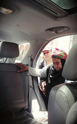 كانت عملية رفعها الى سيارتي العالية صعبة جداً علينا، تمنيت لحظتها لو ان لدي سيارة صغيرة كي لا أزيد عناءا على عناءها.. تعاونا انا وأختي في وضعها على المقعد الخلفي وطلبت ان التقط لها بعض الصور والتي عندما تمعنت فيها لاحقا كانت قسمات وجهها تحمل موسوعة من الحكايا الدفينة والمعاناة التي يجب ألا تعيشها مسنة مثلها في وطني..!