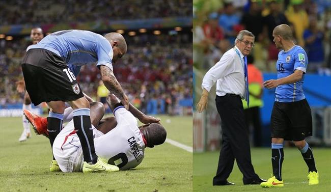 وطرد ماكسيميليانو بيريرا لاعب اوروجواي في الوقت المحتسب بدل الضائع بعد تدخل عنيف على كامبل.