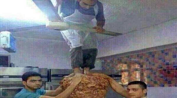رأيت المشهد ذاته عندنا في الأردن. بل إن العمال سحبوا "سيخ الشاورما" على الرصيف قبل أن ينصبوه. حدث هذا في مطعم ......بجبل الحسين في تسعينات القرن الماضي.