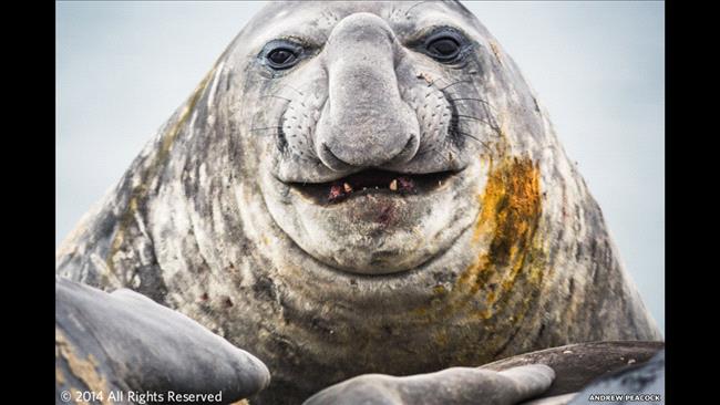 والأشارة الفخرية في صور اللافقاريات والبرمائيات، والزواحف والثدييات البحرية كان من نصيب صورة "هل من طبيب أسنان؟" وهي صورة لفقمة بحرية ضخمة فى القارة القطبية الجنوبية للمصور اندرو بيكوك.