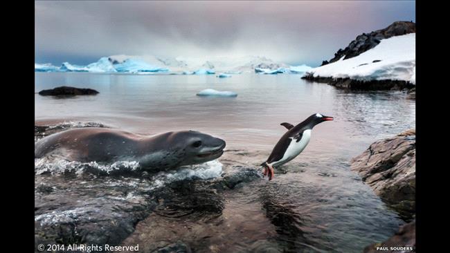 والصورة الفائزة بالجائزة الكبرى، البطريق الأكثر حظا، للمصور بول سودرز كانت لبطريق فار.