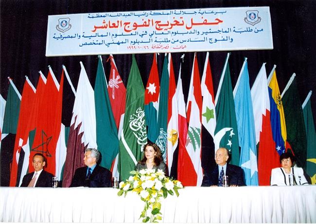 3- جذب دارسين من الخارج ليقيموا في الأردن طيلة فترة دراستهم، حيث بلغ عدد خريجي الاكاديمية من الطلبة العرب (1068) طالباً وطالبة.