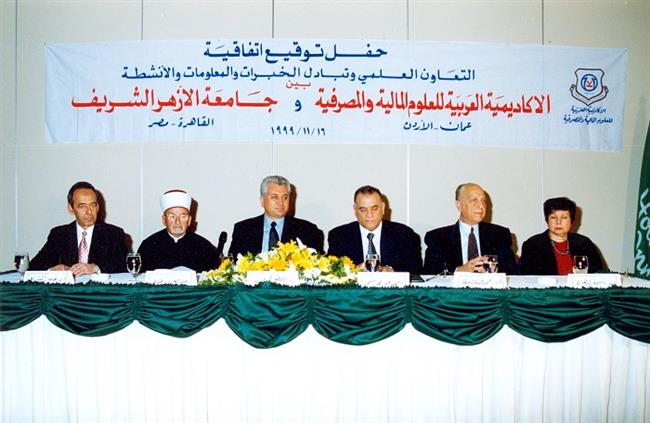 لقد كانت مقابلة اللجنة التأسيسية المنبثقة عن اتحاد المصارف العربية للملك الحسين بن طلال -رحمه الله- عام 1985 مبررا جوهريا في نشأة الأكاديمية العربية للعلوم المالية والمصرفية وتأسيسها تحت مسمى المعهد العربي للدراسات المصرفية واختيار الأردن كدولة مقر لها واستبعاد كل من البحرين ومصر ولبنان، بموجب قرار حكومة المملكة الأردنية الهاشمية رقم 65/11/1 تاريخ 5/9/1986، ثم وقعت اتفاقية دولة المقر بتاريخ 24/8/1990، وفي عام 1996 تم تعديل المسمى ليصبح "الأكاديمية العربية للعلوم المالية والمصرفية"، ثم عُدلت اتفاقية المقر بتعديلات طفيفة عام 2002. بعد أن قامت حكومة المملكة الأردنية الهاشمية بتخصيص أرض للأكاديمية وتمليكها لها في عام 2003 لتمكينها من تأدية رسالتها المحددة في نص اتفاقية دولة المقر وتعديلاتها التي حصنت بالإرادة الملكية السامية الـمـمهورة بـتوقـيع الملك والتي نصها: "بـعـون الله وتوفيقه نـحـن عـبد الله الـثانــي ابن الحسين مـلـك المملكه الأردنيّة الهاشميّة بعد أن اطلعنا على التعديلات التي تمت على اتفاقية المقر الموقعة بين حكومة المملكة الأردنية الهاشمية والأكاديمية العربية للعلوم المالية والمصرفية، نـعـلـن مـوافـقـتـنا عليها ، ونـتـعـهـد بأن نقوم بما ورد فيها ، ولــن نـسمـح بـإذن الله بالاخلال بـها . لـذا أمـرنا بوضع خاتمنا ووقـعـنا عليها حسب الأصول".