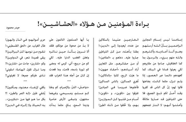 بـراءة المـؤمنيـن مـن هـؤلاء «الحشـاشـيــن»!