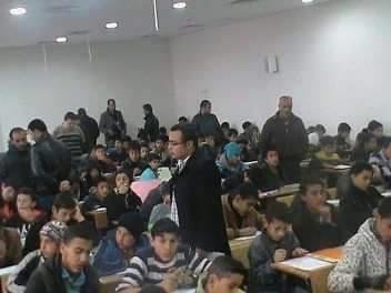 وبعيدا عن الثقافة العامة.. لا بد وان أشير الى مشهد استفزني اليوم.. صورة لإحدى قاعات الامتحان في مدرسة زوبيا الثانوية للبنين حيث تم حشر 267 طالب في قاعة واحدة.. الصغير مع الكبير.. مع مجموعة اكبر من الغفر فوق رؤوسهم.. هل هذه هي الاجواء النفسية المناسبة للامتحان..!