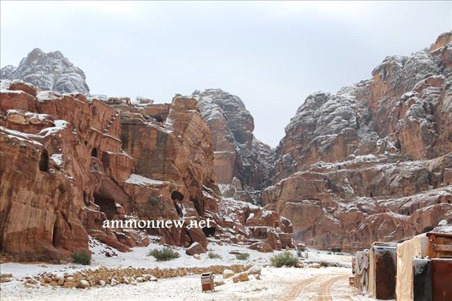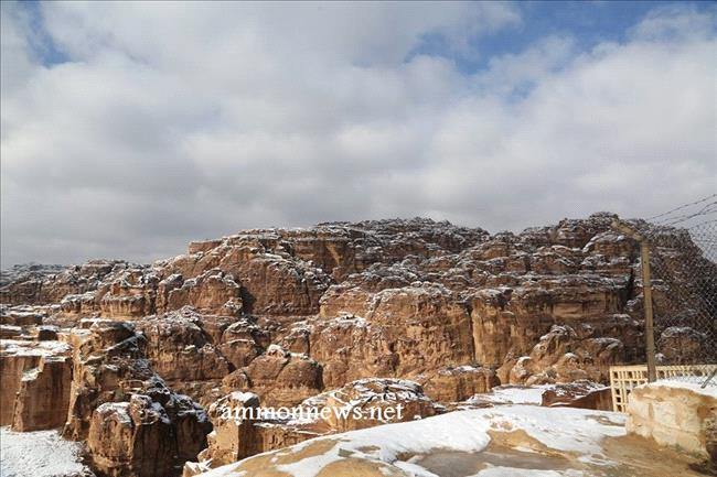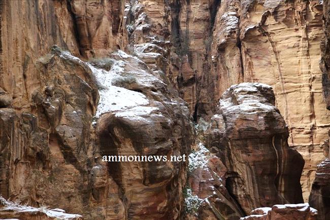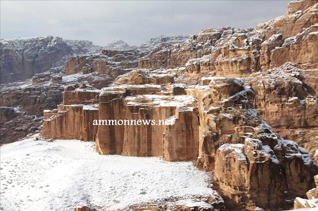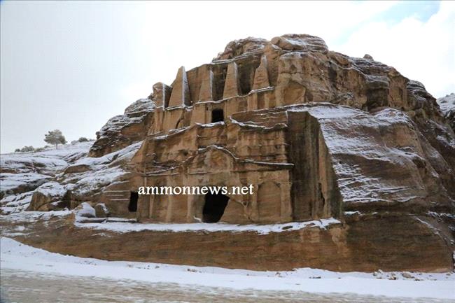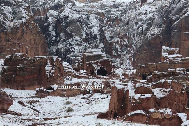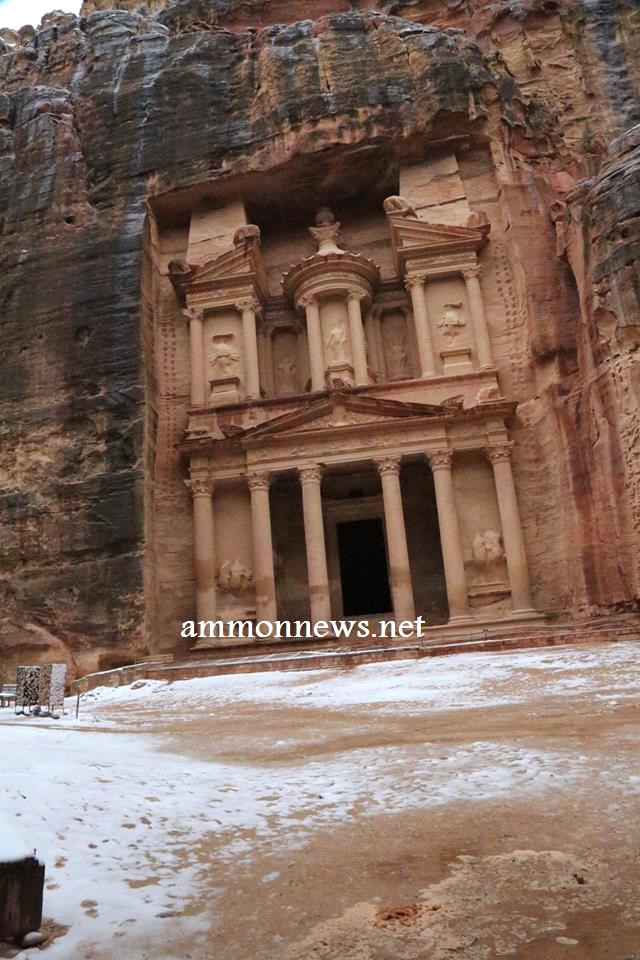 عمون - صور للثلوج التي تساقطت على البتراء في الموجة القطبية التي عبرت المملكة خلال الايام الماضية.