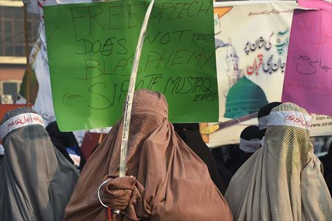 عمون - ضمن الحملة العربية والاسلامية والانسانية والدينية في كافة ارجاء الارض تبدو هنا "صورتان" احداها لسيدة مصرية سافرة واخرى باكستانية محجبة تتفقان في الدفاع عن رسول الله صلى الله عليه وسلم.