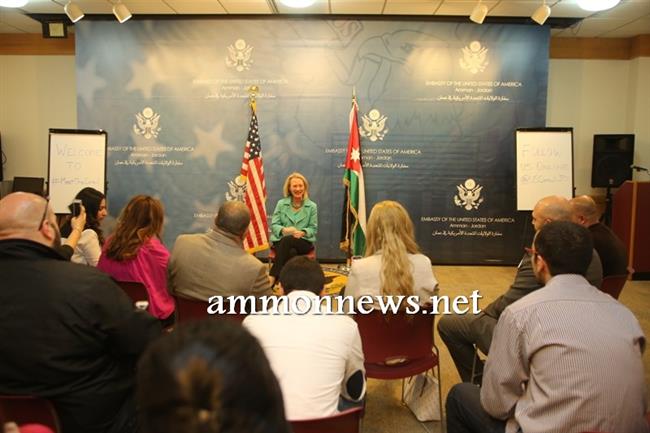 عمون - التقت السفيرة الامريكية في عمان أليس ويلز مجموعة من الشباب الناشطين على مواقع التواصل الاجتماعي "فيس بوك" و"تويتر" في مقر السفارة في عمان.