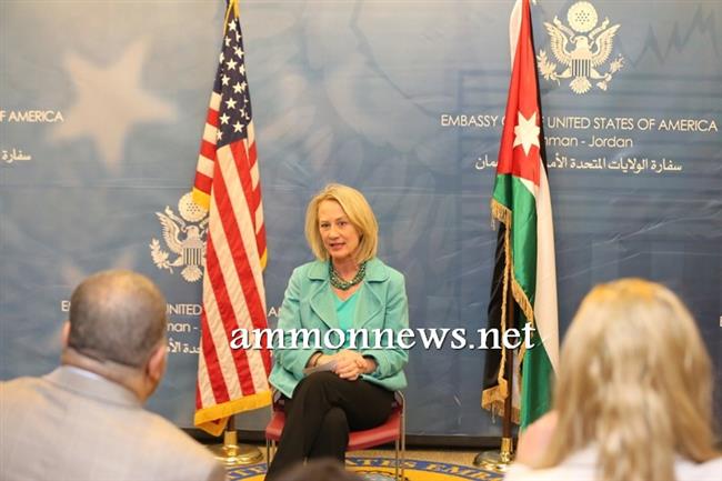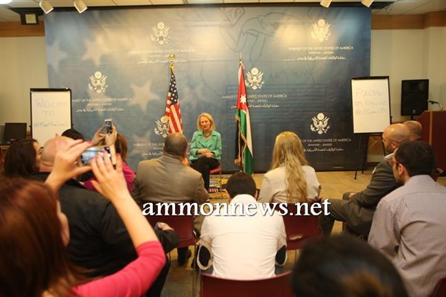 واقامت السفيرة اللقاء -بحسب مصادر السفارة - للتأكيد على أنها تعمل بكل جهدها لمنح جميع المتقدمين الفرصة للحصول على التأشيرة، والعيش في التجربة الامريكية ضمن برامج مختلفة منها برامج التبادل الثقافي بين الطلاب في الجامعات الاردنية وطلاب في الجامعات الامريكية.