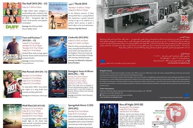 وأوضحت الياس أن قاعة "سينما القدس" عرض فيها خلال السنوات الماضية الأفلام الثقافية المختلفة كما خصصت للفعاليات والأطفال وطلاب المدارس، وبين الحين والآخر يتم استهداف 7 مدارس بالتعاون مع مؤسسة فيصل الحسيني، بعرض الافلام الثقافية للطلبة ثم مناقشته.