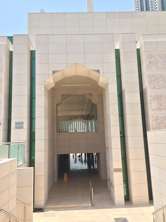 وتوجد بالمسجد شاشات تلفزيونية لربط جميع قاعات الصلاة وشبكة بث داخلية وواجهات المسجد عبارة عن لوحة فنية من اسماء الله الحسنى تضيء ليلا وتعد مزارا يعطي المسجد ميزة معمارية وروحانية خاصة ومأذنة بارتفاع حوالي 50 مترا. حضرالافتتاح سعادة الدكتور محمد مطر الكعبي رئيس الهيئة العامة للشؤون الإسلامية والأوقاف وسعادة محمد عبيد المزروعي المدير التنفيذي للشؤون الاسلامية بالهيئة العامة للشؤون الاسلامية والاوقاف.