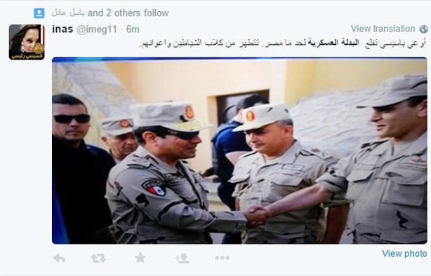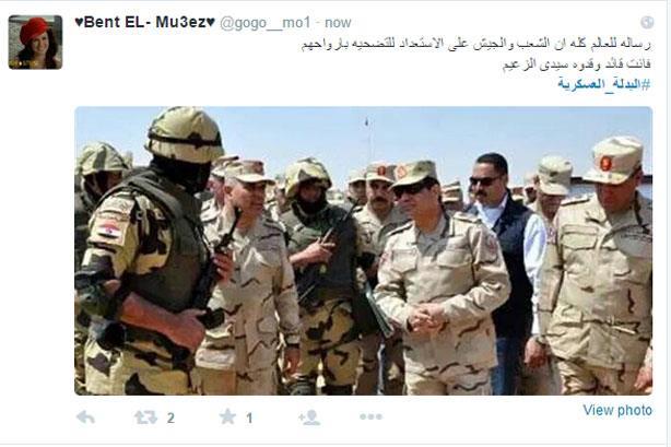 واحتل هاشتاج (البدلة العسكرية)، الأعلي متابعة على تويتر، خاصة عقب أعلن المكتب الإعلامي لرئاسة الجمهورية، أن الرئيس عبد الفتاح السيسي، حرص علي ارتداء الزي العسكري أثناء زيارته لشمال سيناء و ذلك لتقديم التحية الواجبة لكل فرد من أفراد القوات المسلحة و لتأكيد تضامنه معهم.