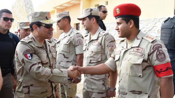 عمون- حرص الرئيس عبد الفتاح السيسى، على ارتداء الزى العسكرى، أثناء تفقده صباح اليوم السبت، رجال القوات المسلحة والشرطة المدنية بشمال سيناء. كما ظهرت على بدلة الرئيس العسكرية فى أول مرة، لافتة مكتوب عليها "الرئيس عبد الفتاح السيسى - القائد الأعلى للقوات المسلحة".