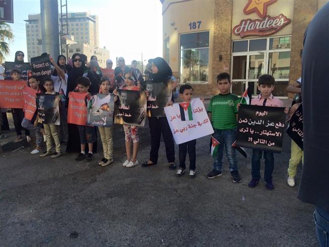 عمون - اعتصم أمام مطعم "هارديز" في العاصمة عمان مساء الخميس أطفال وعدد من اهالي الطفل عبد العزيز الذي راح ضحية صعقة كهربائية داخل المطعم.