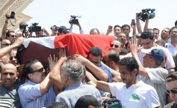 وعقب أداء صلاة الجنازة بأحد مساجد مدينة السادس من أكتوبر بمحافظة الجيزة حمل المشيعون نعش الشريف ملفوفا بعلم مصر ليوارى الثرى بعد رحلة عطاء فني امتدت لنحو 50 عاما.