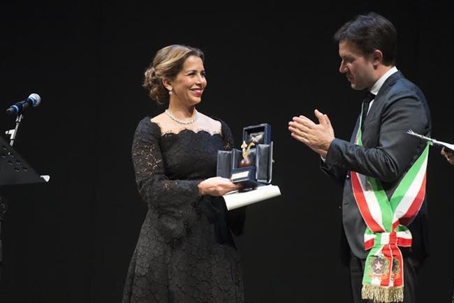 عمون - تسلّمت حرم صاحب السمو الشيخ محمد بن راشد آل مكتوم نائب رئيس الدولة رئيس مجلس الوزراء حاكم دبي، سمو الأميرة هيا بنت الحسين رئيسة مجلس إدارة المدينة العالمية للخدمات الإنسانية في دبي سفيرة الأمم المتحدة للسلام، جائزة "جيليو دي اورو" تقديراً لجهود سموها في مجال العمل الإنساني، وذلك خلال حفل كبير اُقيم في مدينة فلورنسا الإيطالية.