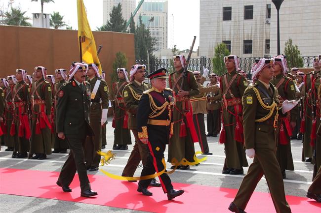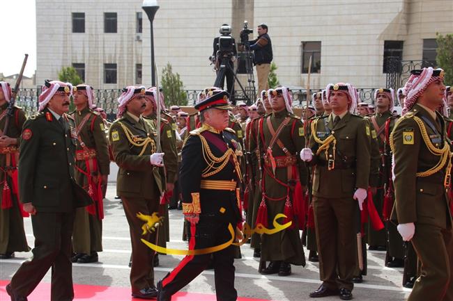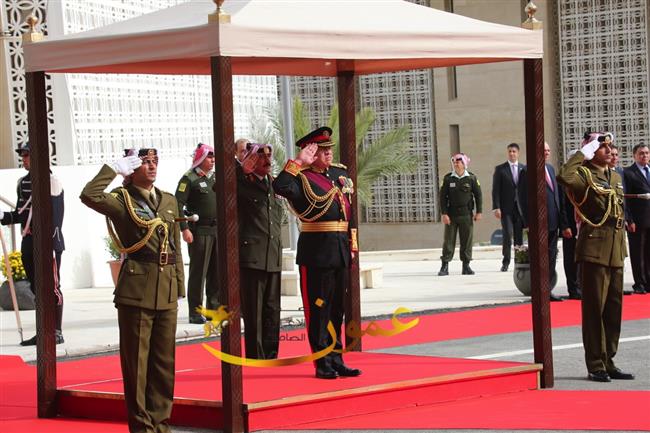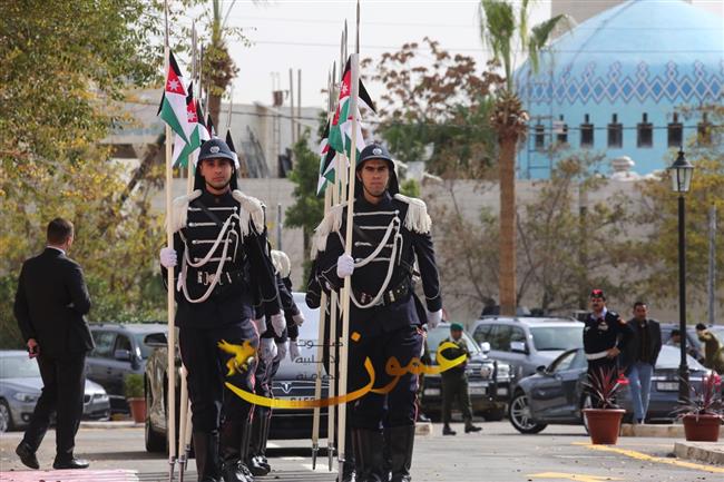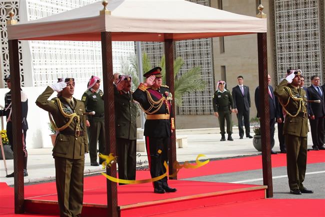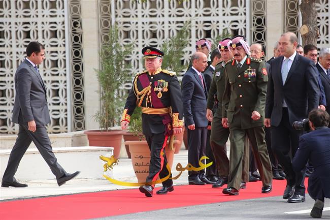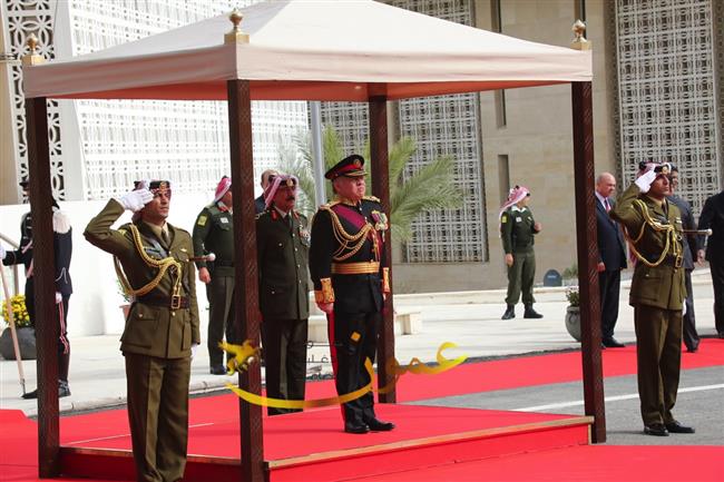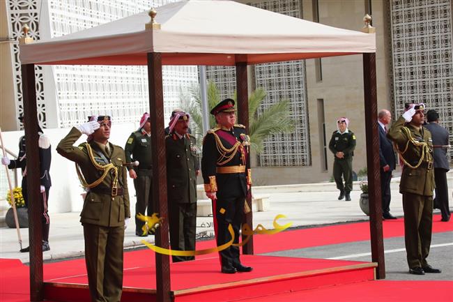 وكانت موسيقات القوات المسلحة عزفت السلام الملكي لدى وصول جلالة الملك عبدالله الثاني إلى باحة مجلس الأمة، وأطلقت المدفعية إحدى وعشرين طلقة تحية لجلالته، ثم استعرض جلالته حرس الشرف الذي اصطف لتحيته.