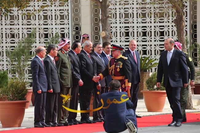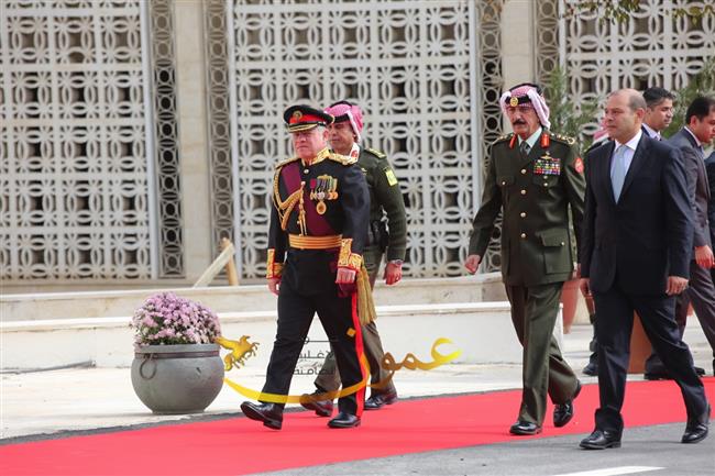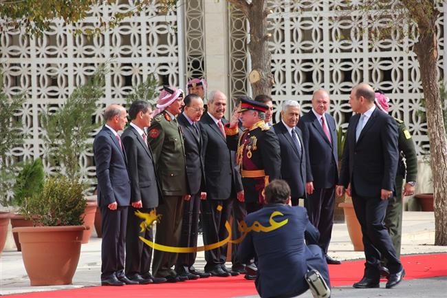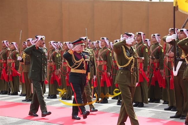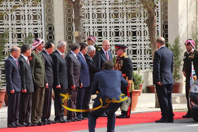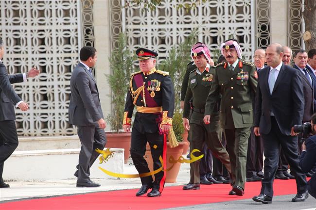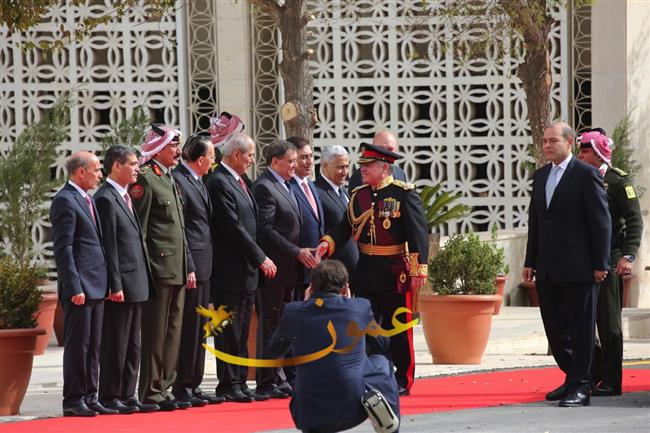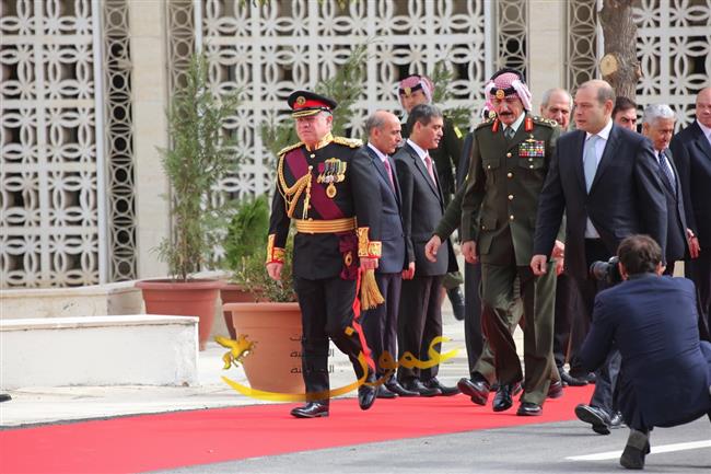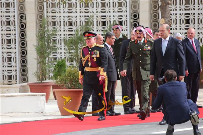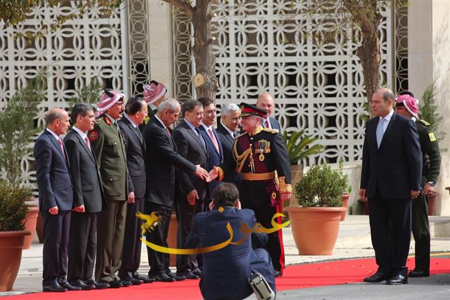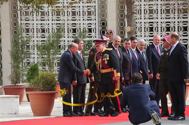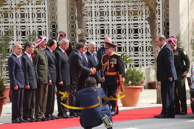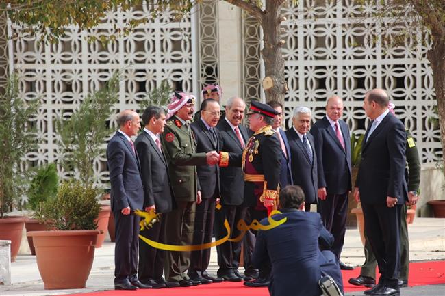 وتفضل جلالته، عقب إلقاء خطاب العرش السامي، بالسلام على أعضاء مجلسي الأعيان والنواب وكبار المسؤولين في الدولة.