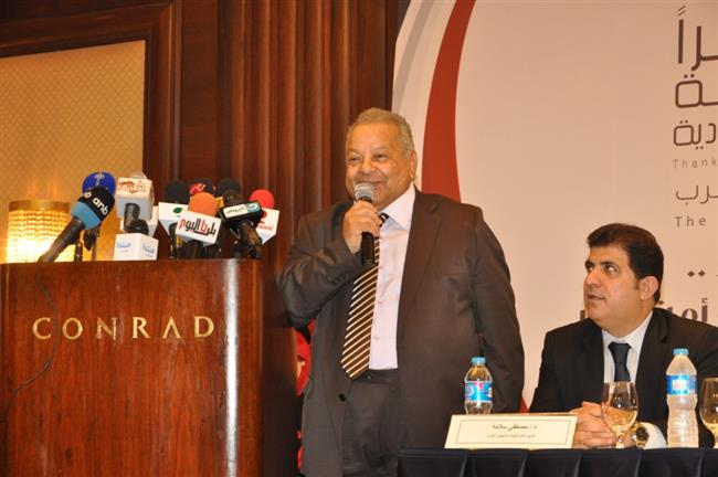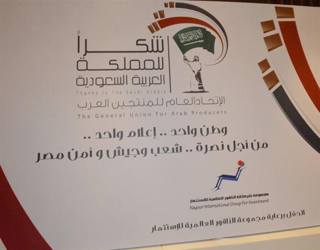 ثم تحدث دكتور ابراهيم ابو ذكري رئيس الاتحاد العام للمنتجين العرب وقال : نحن اليوم في مؤتمر الوفاء ، الوفاء للدول العربية الشقيقة التي وقفت بجانب مصر بعد ثورة 30 يونيو ، والوفاء للدبلوماسية المصرية التي وصلت بمصر لتكون احد اعضاء مجلس الامن الغير دائمين وذلك بدعم هؤلاء الدول الشقيقة وهم خمس دول ، ونحن كاتحاد يضم 12 دولة عربية بداخله بدأنا بتكريم هؤلاء الدول بداية من دولة الامارات العربية المتحدة ، وكذلك دولة الكويت وذلك خلال الدورة الرابعة من مونديال القاهرة للاعمال الفنية والاعلام الشهر الماضي ، وها نحن اليوم نستكمل هذا التكريم بالاعلان عن حفل شكرا للملكة العربية السعودية ، تدعيما لعلاقة المجتمع المدني المصري السعودي وذلك في مواجهة الحرب الاعلامية التي تخوضها مصر ، فحيوا معي الممكلة العربية السعودية والتي ساندت مصر مؤخرا بزيادة عدد السائحين والطائرات الموجهة الى مصر وذلك بعد حادث الطائرة الروسية في سيناء وتأكيد الملك السعودي على تنشيط السياحة المصرية