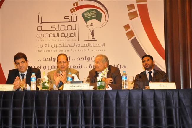 ثم تحدث دكتور مصطفى سلامة الامين العام لاتحاد المنتجين العرب والذي قال : نحن نقول للملكة العربية السعودية شكرا ، شكرا للوقفة الكبيرة التي ساندت بها مصر فهي وقفة شعب مع شعب ، هي مبادرة وطنية من حكومة وشعب مصر الى المملكة العربية السعودية