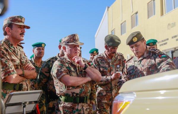 وكان في استقبال جلالته لدى وصوله، مستشار جلالته للشؤون العسكرية رئيس هيئة الأركان المشتركة، الفريق أول الركن مشعل محمد الزبن، وقائد المنطقة، وقادة التشكيلات فيها.
