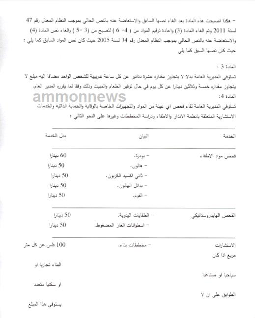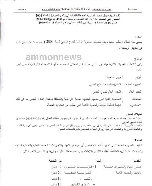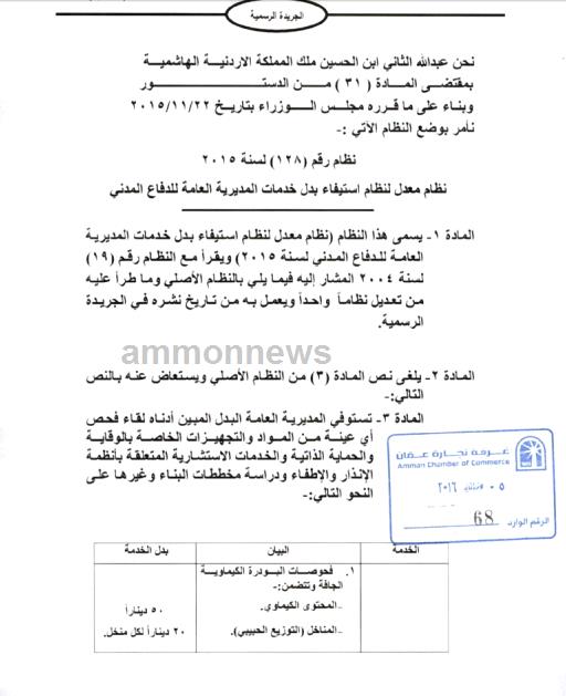 عمون - محمد الصالح - نشرت الجريدة الرسمية قرار مجلس الوزراء الصادر في شهر تشرين ثاني الماضي المتعلق بالنظام المعدل لاستيفاء بدل خدمات مديرية الدفاع المدني.