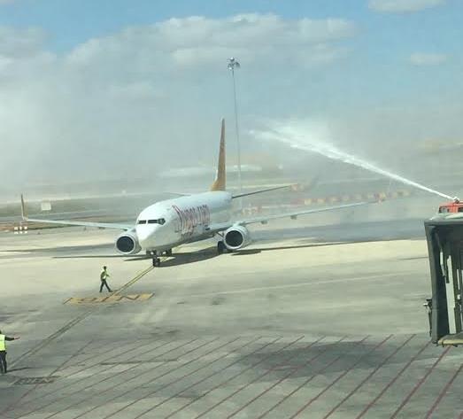 عمون - رحب مطار الملكة علياء الدولي باول رحلة للخطوط الجوية "بيغاسوس" من مطار أنقرة ايزينبوجا اليوم، 20 مارس 2016. والذي سيمثل البوابة الجديدة من تركيا الى العاصمة الأردنية عمان وبواقع ثلاث رحلات أسبوعيا وبسعر مبدئي 109،99 دولار فقط.