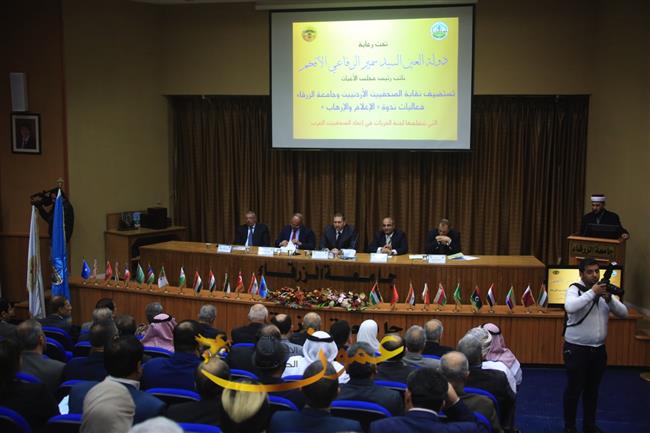 عمون- افتتح نائب رئيس مجلس الاعيان دوله العين السيد سمير الرفاعي، ندوة "الاعلام والارهاب" اليوم في جامعة الزرقاء، وبشاركة اعلامييون وصحفييون من 12 دولة لإطلاق رسالة اعلامية من المملكة الاردنية الهاشمية تحمل مفردات اعلامية موحدة ورافضة لكل مايشهدة العالم من اضطرابات ناتجة عن الارهاب, بحضور رئيس مجلس ادارة شركة الزرقاء للتعليم والاستثمار الدكتور محمود ابو شعيرة، ورئيس الجامعة الاستاذ الدكتور محمود الوادي, وعدد من المسؤولين وممثلي النقابات ورؤساء لجان الحريات في نقابات الصحفيين.