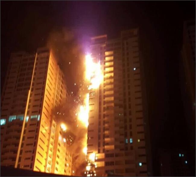 وقال مسؤولون في الدفاع المدني بالمدينة الإماراتية إن الحريق اشتعل في المبنى المكون من 20 طابقا، وتسبب في احتراق سيارات كانت في المنطقة المحيطة به.