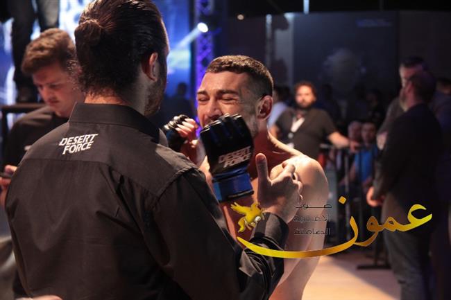 عمون- اقيمت مساء أمس الاثنين، تصفيات بطولة ديزرت فورس للفنون القتالية المختلطة التي تنظمها منظمة ديزرت فورس بالتعاون والشراكة مع الاتحاد الاردني للفنون القتالية المختلطة والاتحاد العربي للفنون القتالية المختلطة، بمسرح حدائق الملك حسين في العاصمة عمان.