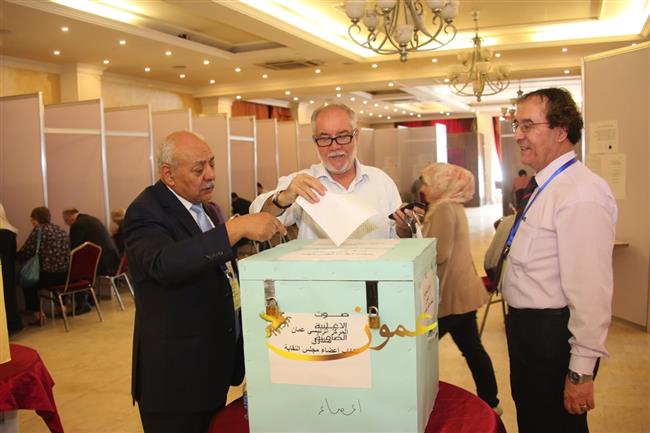 وبلغت نسبة المقترعين 4500 ناخبا من اصل 11،400، حيث ينافس على مقاعد الأعضاء 59 عضوا من مختلف المحافظات.