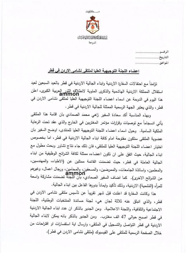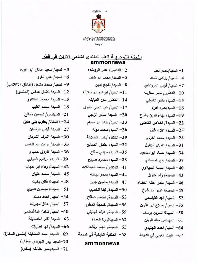 عمون - اسماء ملتقى نشامى الاردن في قطر