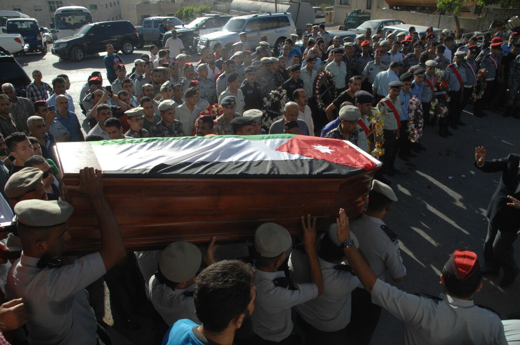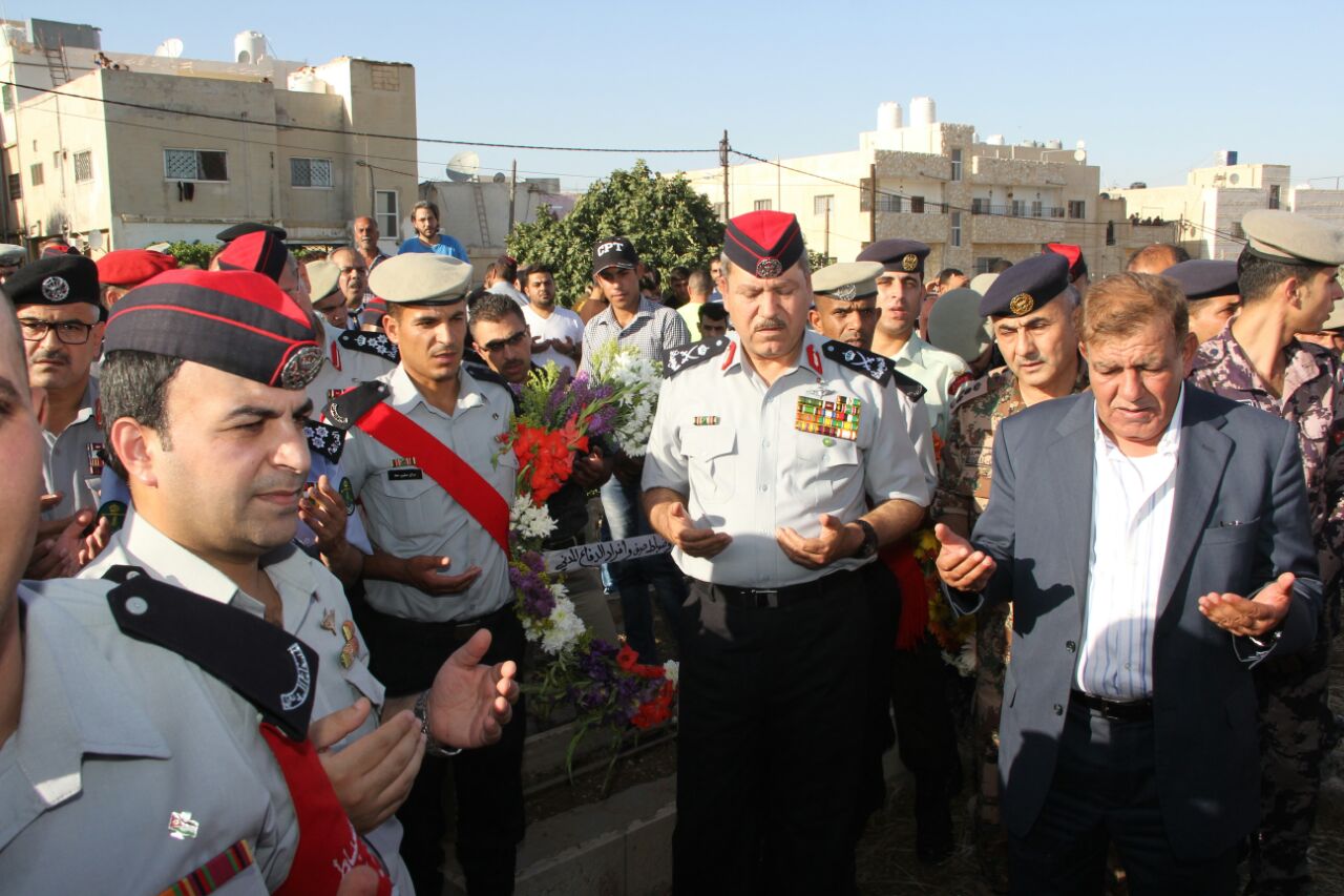 ضمن مراسم جنائزية عسكرية تم عصر اليوم تشييع جثمان الشهيد الوكيل أنس عبدالرؤوف محمود الأسمر من مرتب جهاز الدفاع المدني إلى مثواه الأخير في بلدة زبدة فركوح / محافظة إربد، إثر الهجوم الإرهابي الذي استهدف موقعا عسكريا وأمنيا لخدمات اللاجئين السوريين في منطقة الركبان بالمملكة . |
