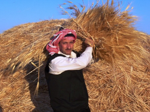 كنتُ حصّاداً ورجّاداً في تموز. الأطفال في قريتي كانوا عِمادَ الطبقة العاملة. ورثوا المناجلَ والشواعيبَ والأكفَّ المشقوقةَ والوجوهَ الموشومةَ بالقشب (الأغزيما) من إلهٍ بابليٍّ قديم. كُنيته تموز، ومعناه الخصب، أمّا الخصوبةُ فموعدها خميسُ الآباءِ والأمهاتِ، ليتكاثرَ الأولادُ والبناتُ في خدمةِ الحقولِ، ويحفظوا الأغنيةَ من أولها: "منْجليْ وامنجلاه. راحْ للصايغْ جَلاه". وهي ليست كــ"باسم ورباب في البستان"، فهنا يأكلُ الأطفالُ الفاكهة، أما نحنُ فكنّا في تلاع الحصاد، نعرقُ، ونشتهي لبناً وكسْرة خبز، ونلهو مع الخنافسِ، والعقارب، والسلاحفِ التي يسوقها الحظُّ، تحتَ الغمور.
