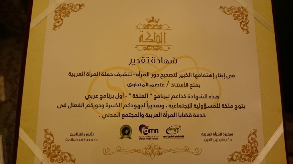 عاصم المنياوي يكرم بالمرحلة الثانية من برنامج الملكة