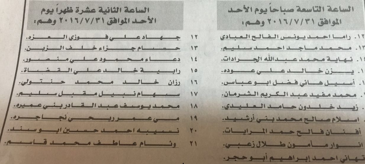 مدعوون لـ التعيين (أسماء)27-07-2016 10:35 AM