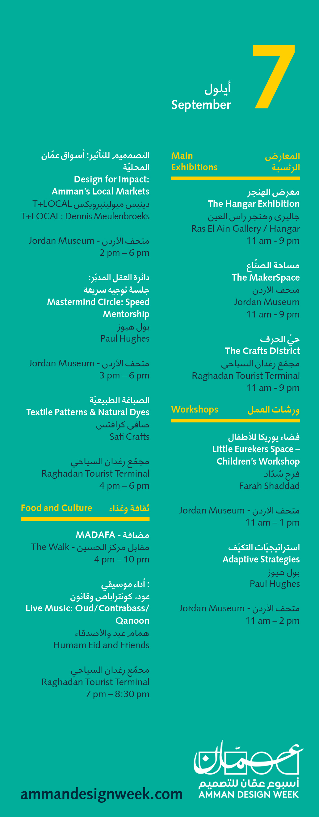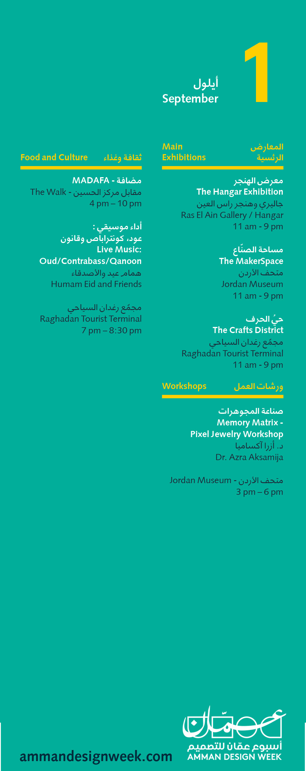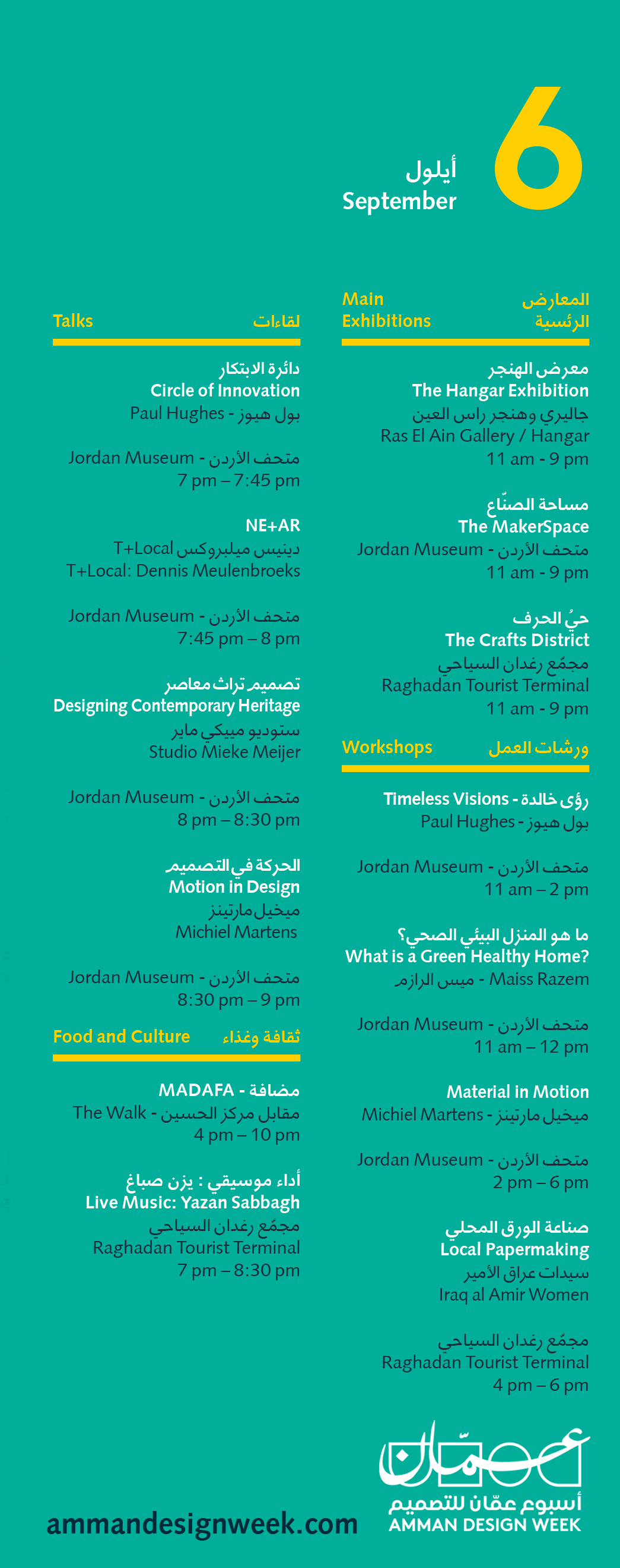من 1 الى 5 ومن 7 الى 9 أيلول- 10 ص – 6 م