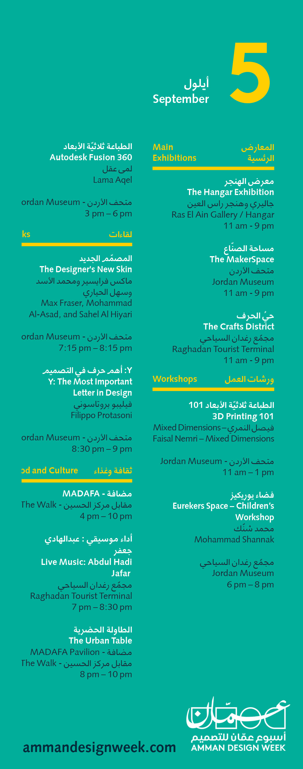 ٥ أيلول- من الساة6:30 م – 5:30 م